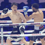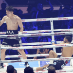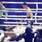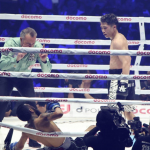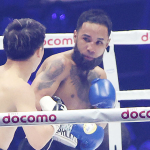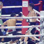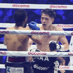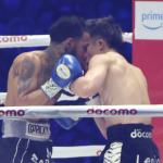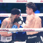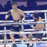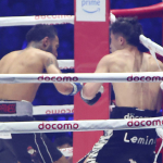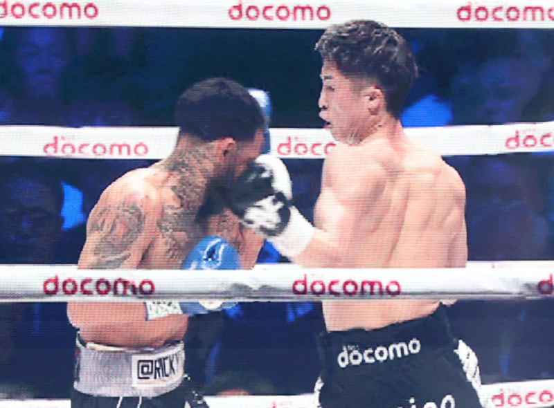 (1)2R、井上が左でダウンを奪う(会場のビジョン、別角度)