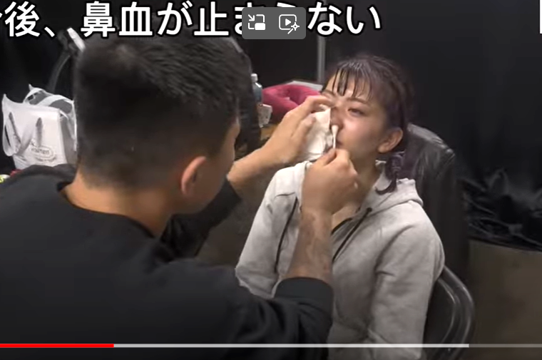 ぱんちゃんが試合後、鼻血を止血する姿を公開(『ぱんチャンネル_ぱんちゃん璃奈』)