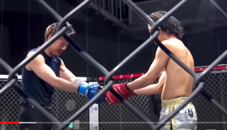KO負けし、足ポキニキに100万円を手渡す刃牙(『朝倉未来YouTubeチャンネル』)