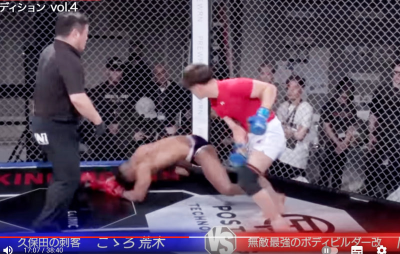 岡田が崩れるように前からダウン(朝倉未来YouTubeより)