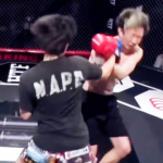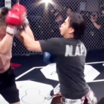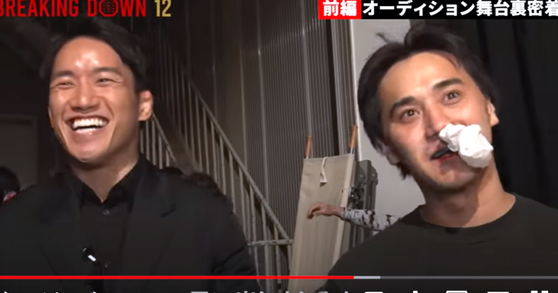 朝倉海と談笑するこめおは、鼻から出血したのかティッシュを詰めた(朝倉海YouTubeチャンネル)