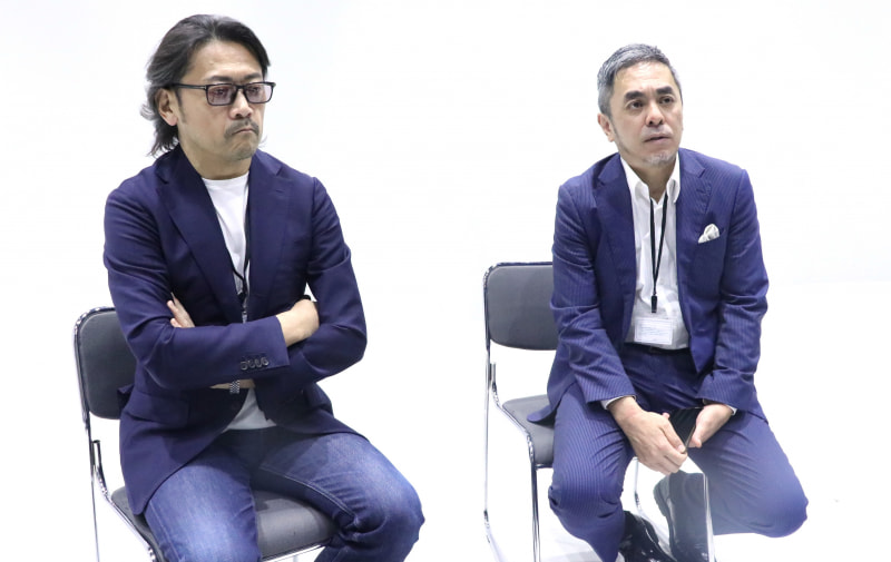 K-1のカルロス菊田プロデューサー(左)、Krushの宮田充プロデューサー(右)が囲み取材を行った