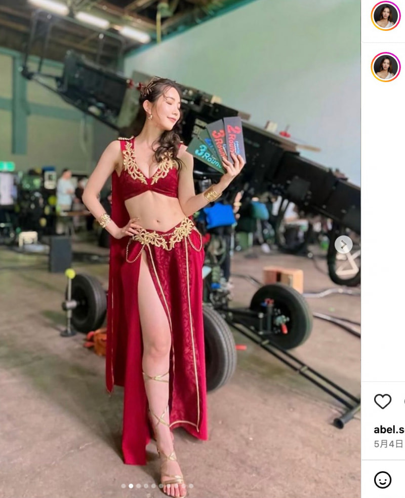 胸元開いたグラマードレスに身を包んだ(@hanaikeraviより)