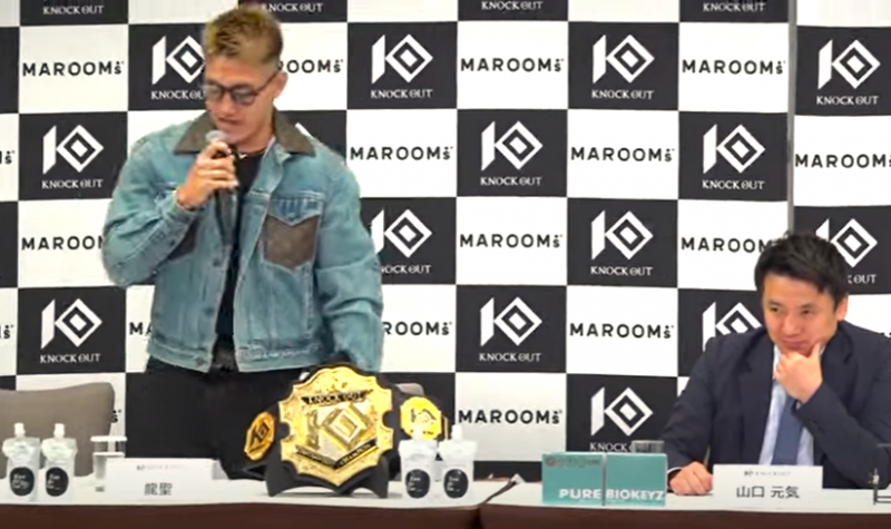 会見の途中で立ち上がって、退席する龍聖(『KNOCK OUT』オフィシャルYouTubeチャンネルより)