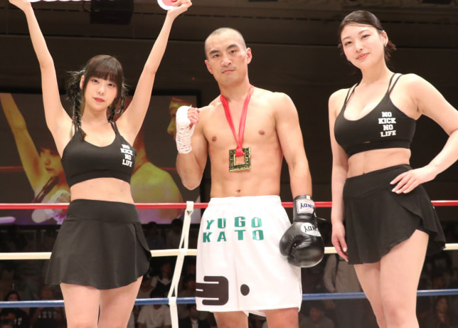 青山ひかる(左)と風吹ケイ(右)がダイナマイトボディでラウンドガール