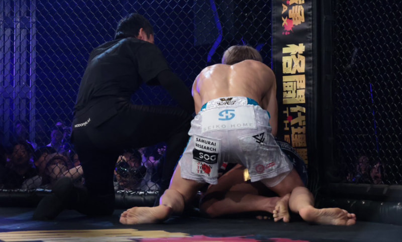 パウンド連打でレフェリーが試合を止めた