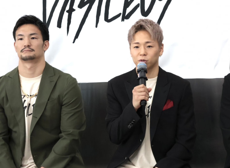 チーム名の由来などを語った武尊、左は松倉信太郎