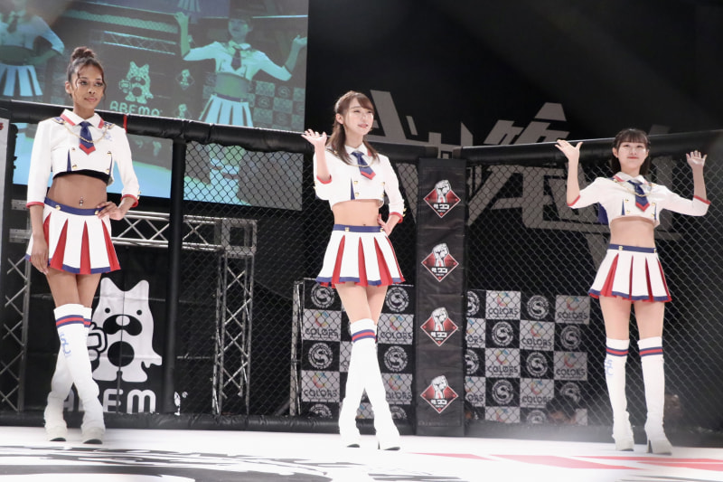 ラウンドガール3人がアイドル風衣装で登場