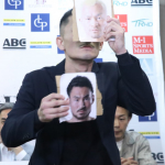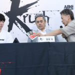 堀井は友尊と神保の顔写真を自分の顔の周りで回す滑りギャグのパフォーマンス
