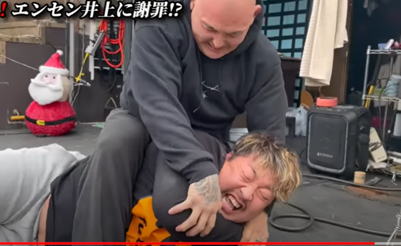 エンセンはノッコン寺田とのコラボ動画で失礼なノッコンを絞め上げた(『ノッコン寺田』YouTubeチャンネル)