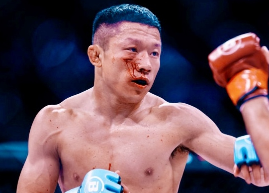 前戦、顔に傷を負いながらも全般的にリードしていた堀口だったが、大逆転KO負けした(c)ベラトール