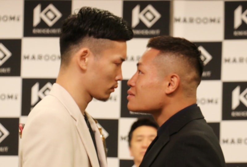 会見でバチバチに睨み合うバズーカ(左)と中島