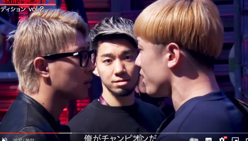 オーディションで言い合いになる冨澤(左)と井原(朝倉未来YouTubeより)