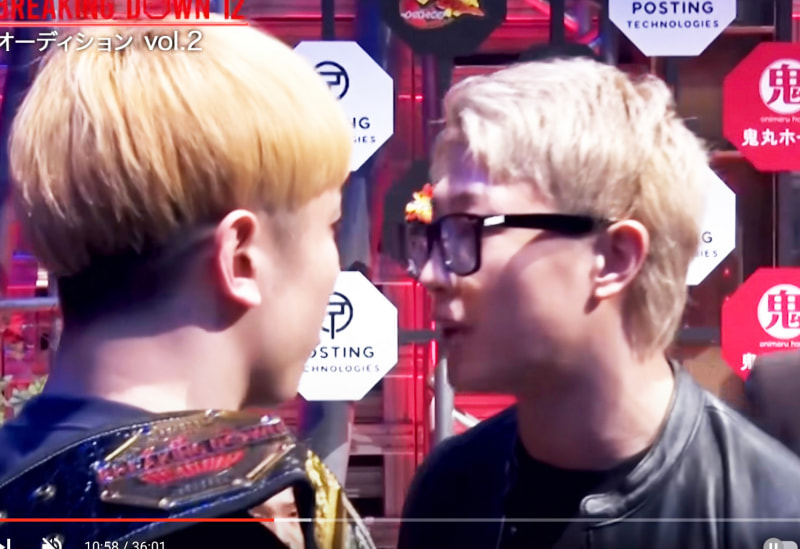 井原(左)と冨澤がタイトルマッチで激突する(朝倉未来YouTubeより)