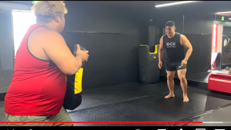 スダリオのタックルを受けるノッコン(『ノッコン寺田』YouTubeチャンネル)
