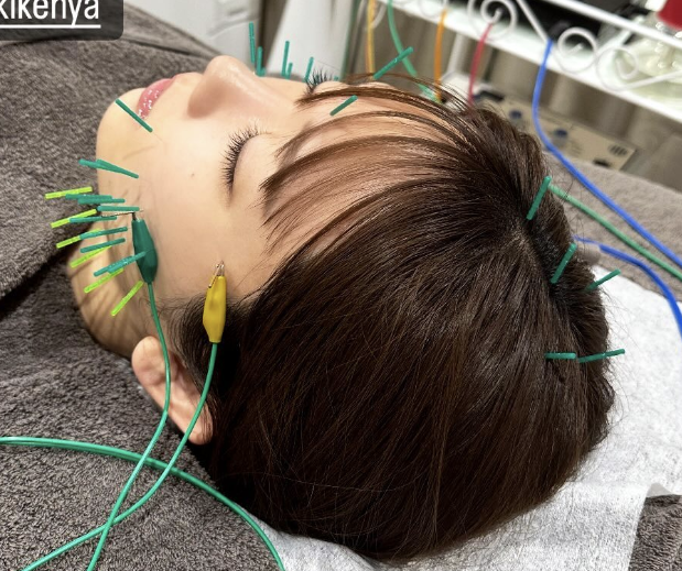 新唯、表情筋を中心に30箇所の鍼(新唯インスタより)