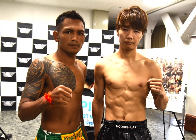 メインで対戦する大田拓真 (右)とオウ・テリット (左)は共に計量をパス