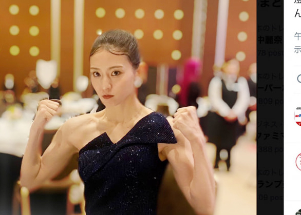 RISE表彰式、ドレスで筋肉出しポージング!(@miyahara_kanonより)