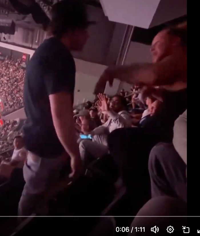 長髪のヒゲ男性(右)と帽子の男性(左)が口論@combat2747より