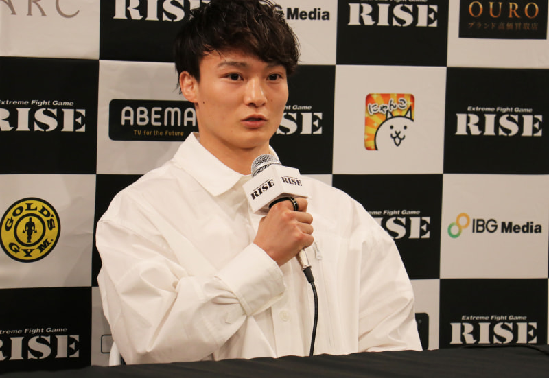 会見でコメントする志朗