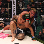 武田光司(左)がシェイドゥラエフ(右)と激突する
