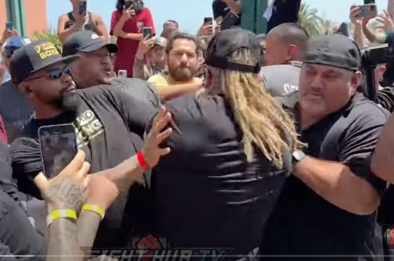 乱闘の序盤、手前の金髪ドレッドヘア男が殴りかかるシーン(FightHype.com YoutTubeより)