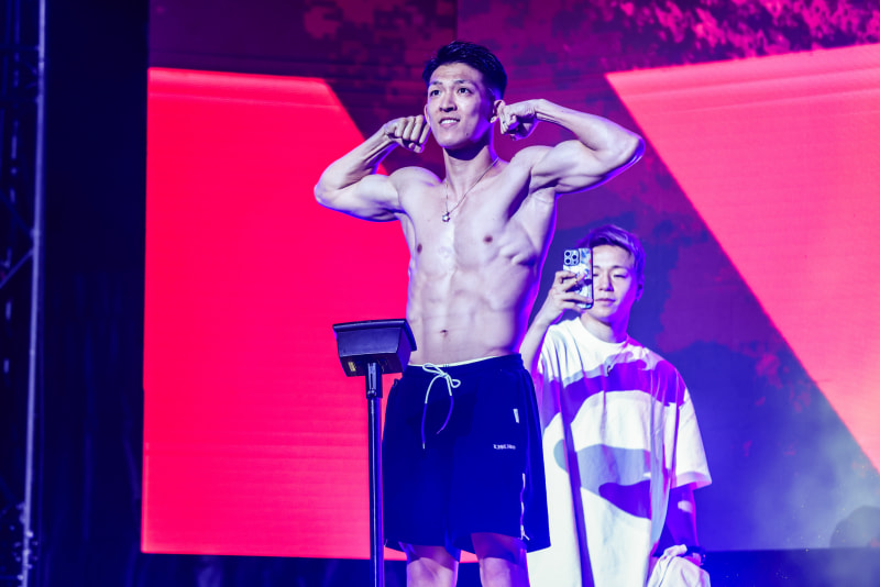 マッスルポーズを決める野杁、武尊の姿も見える(C) ONE Championship