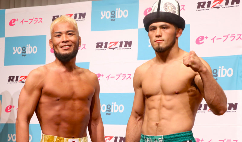 武田(左)とシェイドゥラエフ(右)がムキムキの身体で計量パス