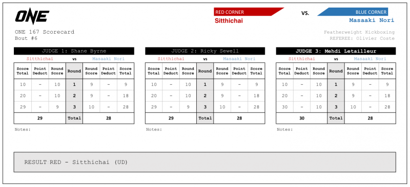 シッティチャイvs野杁のスコアカード、3Rは全員が野杁に10点満点を付けた