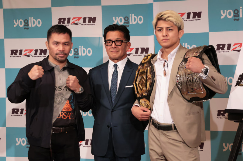 (左から)パッキャオ、榊原代表、鈴木千裕