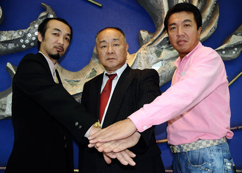 12年7月、JKMO(ジュニアムエタイ統一機構)の発足会見にて。中央が長江氏