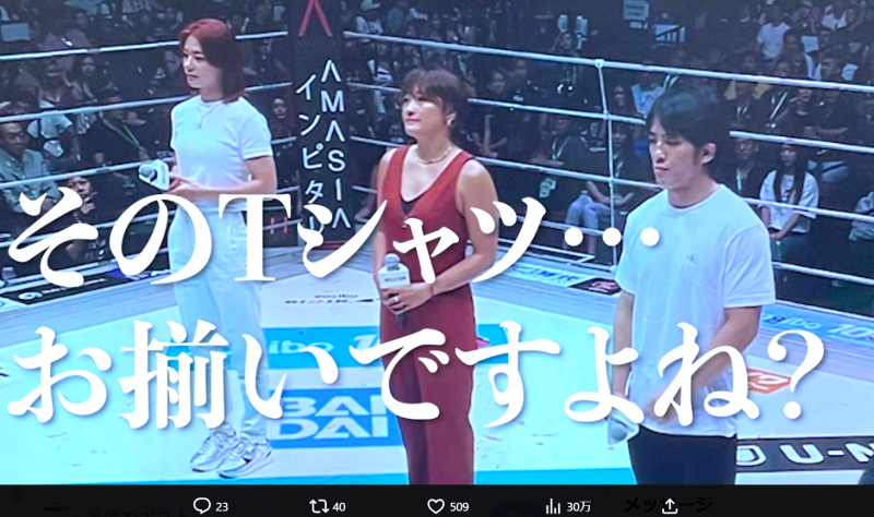 ケイト(左)と征矢(右)がお揃いの白いTシャツを着ていたことで話題に(@Takaki_Soya)