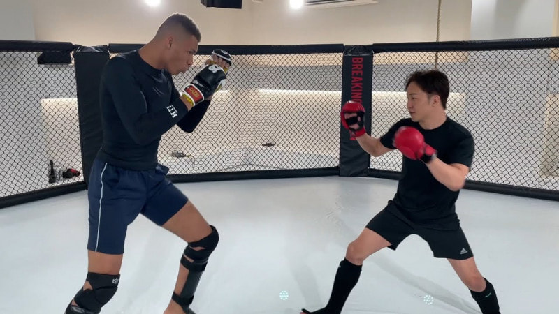 朝倉未来とエドポロキングのMMAスパーリング。頭1つ分の差がある(23年3月、朝倉未来チャンネル サムネイルより)