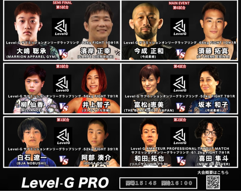 『Level-G PRO』全6試合、メインは今成vs須藤(右上)