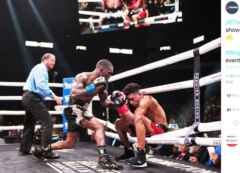 マーティン、相手が場外に落ちそうな豪快KO!(@ShowtimeBoxingより)