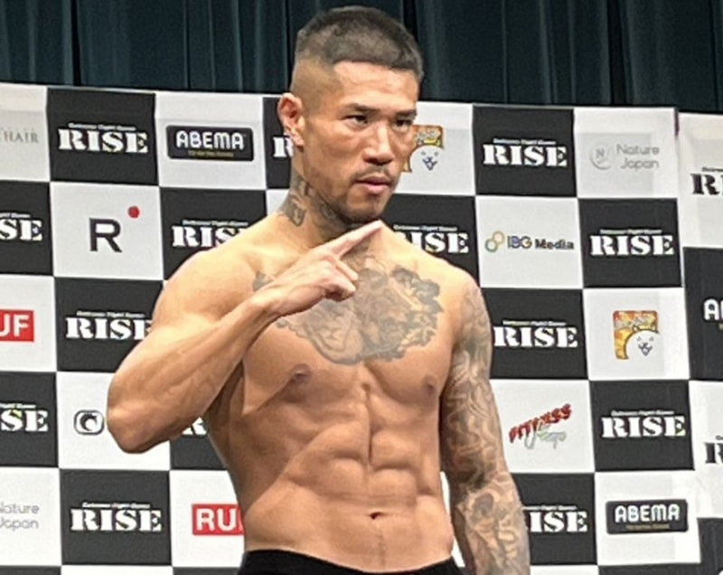 中村寛が計量パス、ポーズを決める