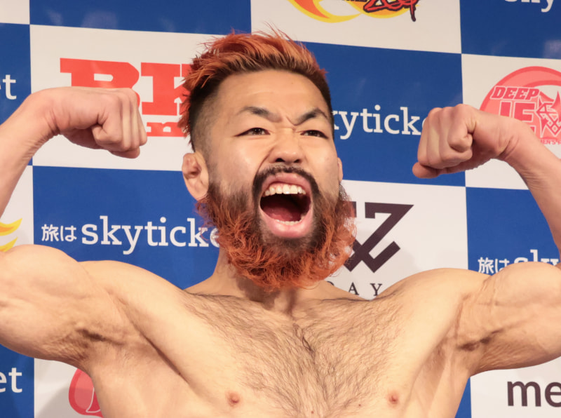 胸毛ニキこと八須拳太郎がDEEP2戦目に臨む(写真は前戦の計量時)
