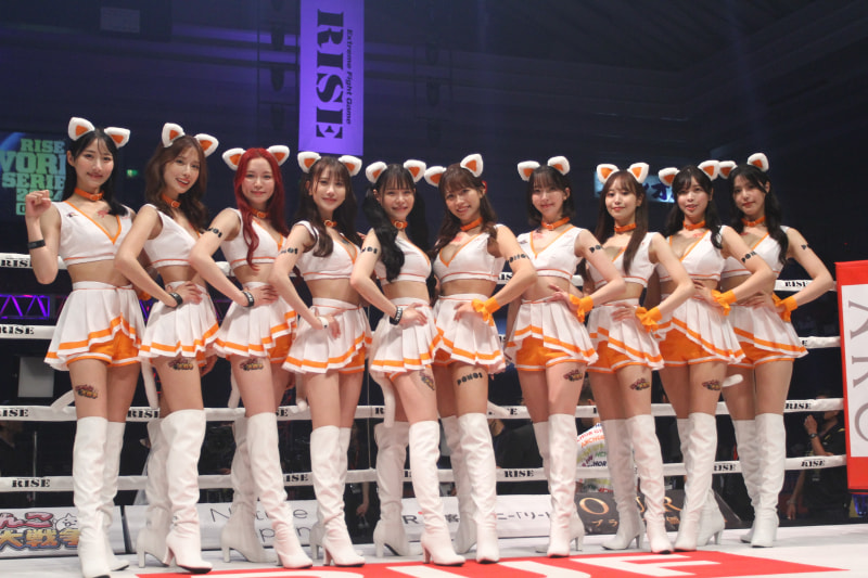 RISEラウンドガール10人。左が川瀬、左から4人目が名取