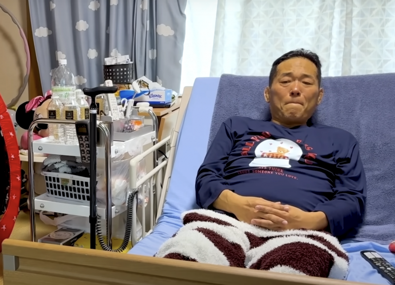 病床の鬼木氏(朝倉海YouTube)