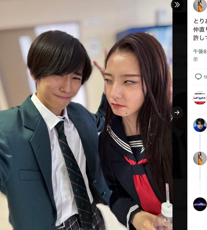 主演の本島純政(左)を睨みつける!(@miyahara_kanonより)