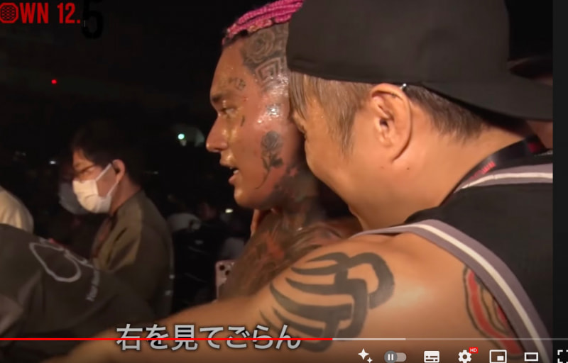 間宮が手当中のてるを指さす(朝倉未来YouTubeより)