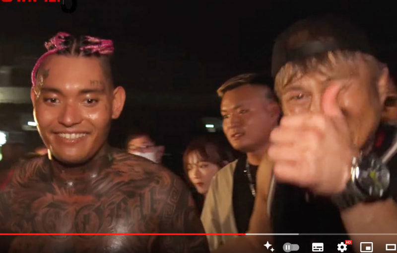 グッドサインで喜ぶ間宮(朝倉未来YouTubeより)