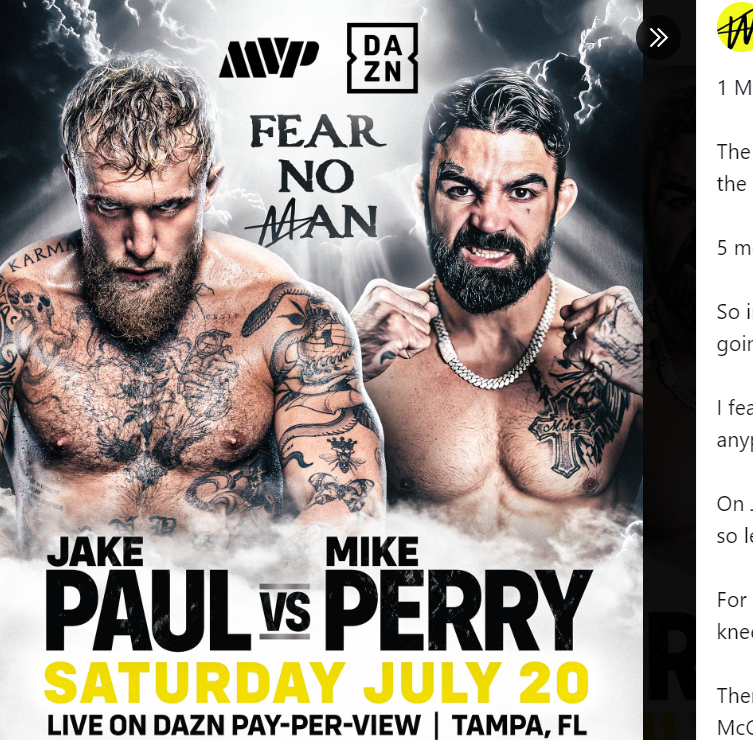 ジェイクの相手は素手ボクシング無敗のマイク・ペリーに @jakepaul