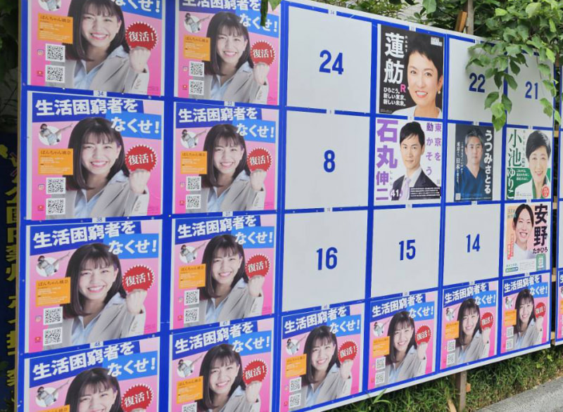 都知事選ポスター掲示場は、ぱんちゃん璃奈だらけに!(東京都中央区)