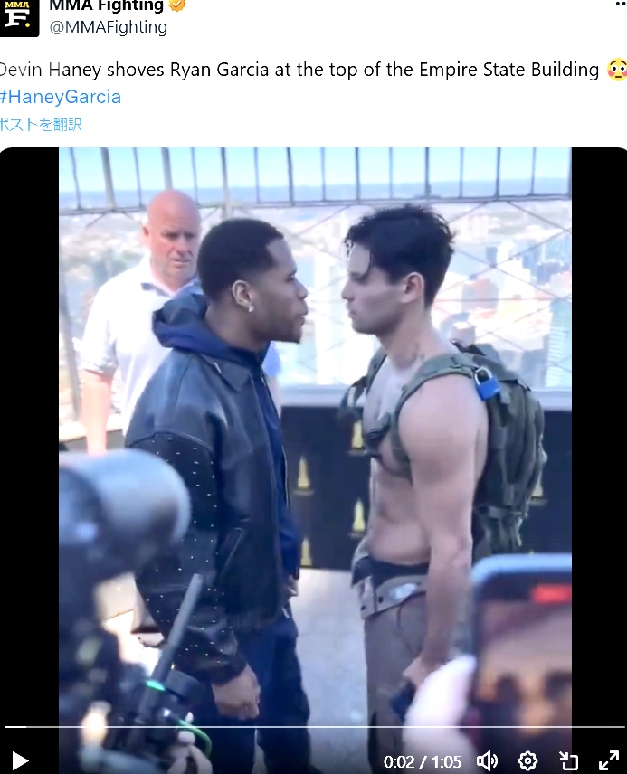 今年ガルシアはヘイニー戦での会見で上半身裸にリュック姿で登場@MMAFighting