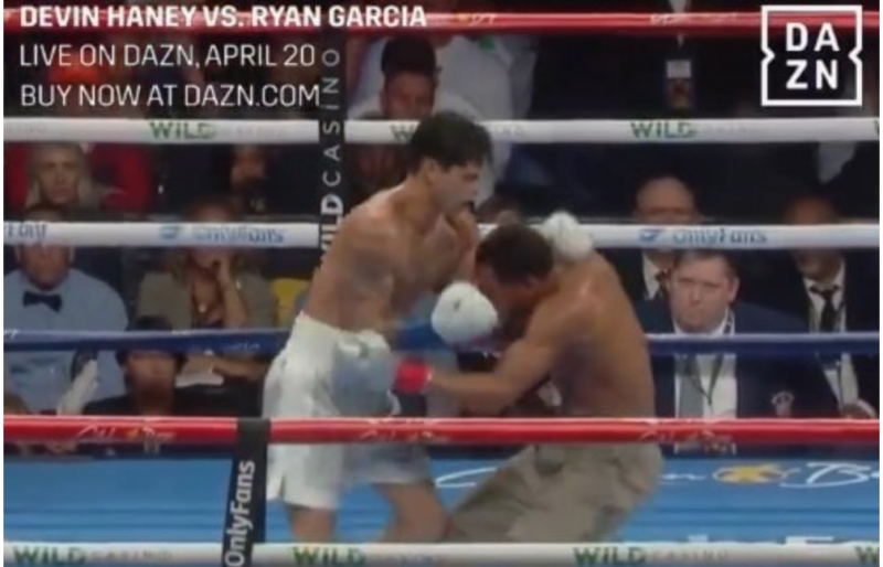 ガルシアのパンチがヘイニーにヒット!(@DAZN Boxingより)