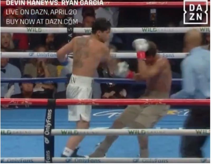 ヘイニー(右)がグラつく(@DAZN Boxingより