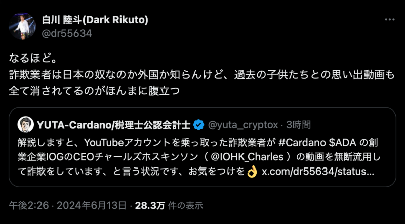 白川がライブ配信の件についてユーザーによる解説をリポスト(@dr55634)
