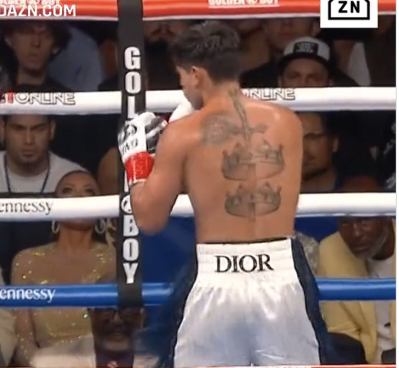 ガルシアの背中のタトゥー。逮捕の男と同じだ(DAZN Xより)