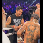今年上半身裸にリュック姿で登場したガルシアにヘイニーはビンタをくらわす@MMAFighting